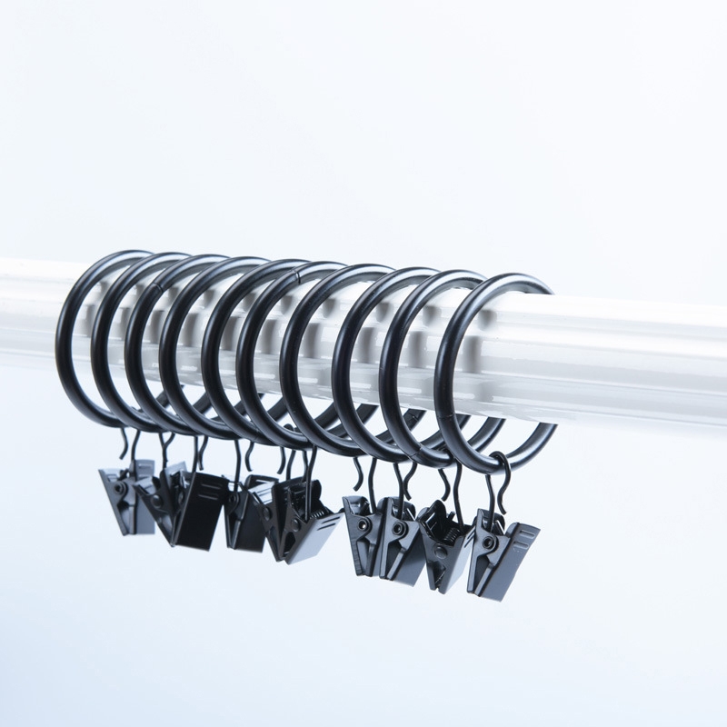 10-osainen kestävä suihkuverhon renkaat klipseillä - Ruostumaton rauta koukut, 25 mm