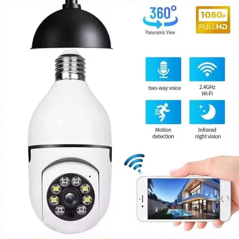1080p-tarkkuuden WiFi-turvakamera, jossa on E27-lampunpistoke - 360 asteen panoraamakuvaava PTZ-kamera, jossa on yönäkö ja kaksisuuntainen ääni