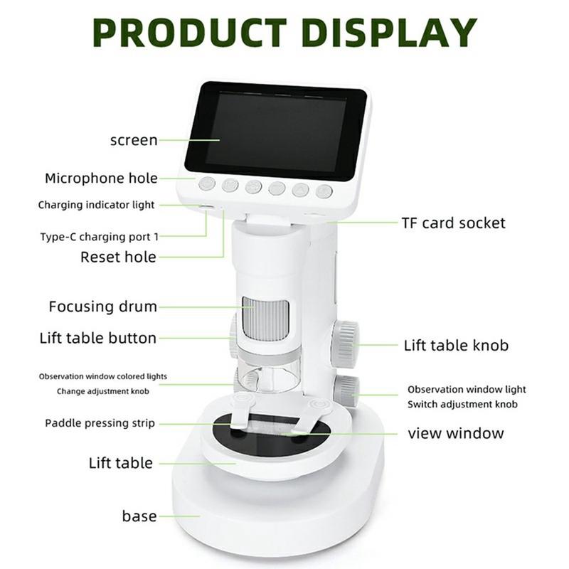 Lasten digitaalinen mikroskooppi 1000X on suunniteltu herättämään uteliaisuutta ja tekemään tieteestä jännittävää nuorille tutkijoille. Suuren suurennoksen, selkeän värinäytön ja sekä kädessä pidettävän että työpöydällä käytettävän mikroskopin avulla lapset voivat löytää arkipäiväisten esineiden piilotettuja yksityiskohtia turvallisella ja kiehtovalla tavalla.