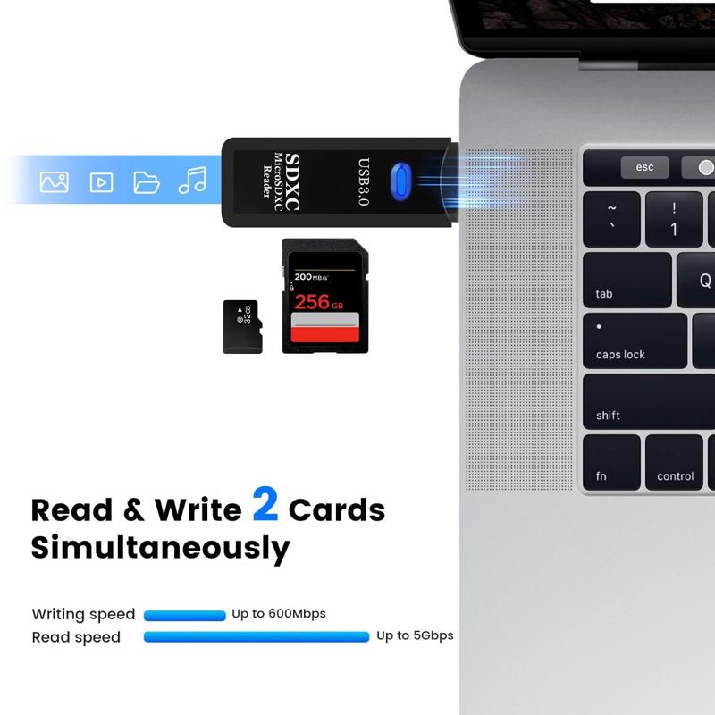 Jos tarvitset kevyen ja käytännöllisen sovittimen SD- ja TF-korttien lukemiseen USB-A-laitteilla, tämä 2-in-1 USB 3.0 -kortinlukija on erittäin hyödyllinen valinta. Nopeiden siirtonopeuksien, kahden korttipaikan mukavuuden ja matkustamiseen sopivan muotoilun ansiosta se helpottaa tiedostojen käyttöä ja varmuuskopiointia missä tahansa työskenteletkin.