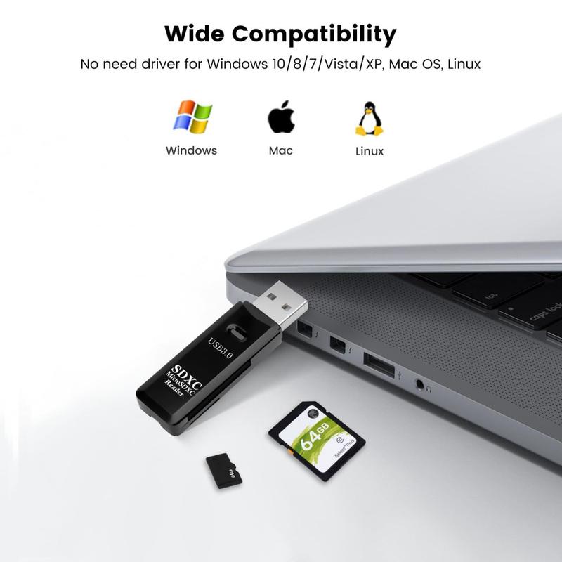 Kaksoispaikkainen rakenne, kevyt rakenne ja plug-and-play-toiminnallisuus tekevät siitä hyödyllisen työkalun valokuvaajille, opiskelijoille, toimistokäyttäjille ja kaikille, jotka työskentelevät säännöllisesti muistikorttien kanssa. Läpinäkyvä suojakansi auttaa myös suojaamaan USB-liitäntää paremmin kuljetuksen ja säilytyksen aikana.