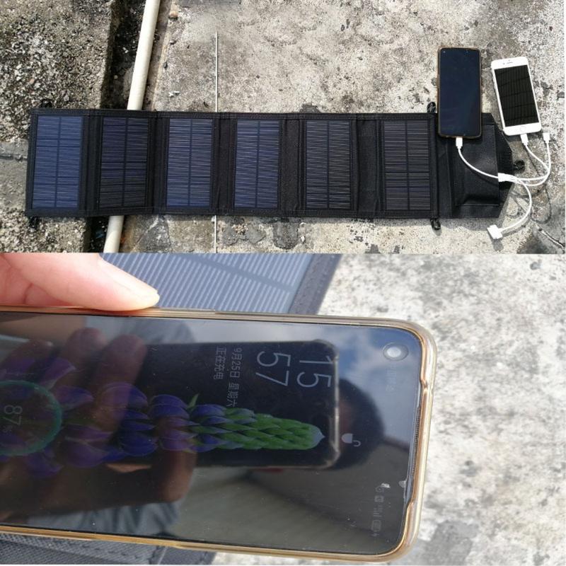 Lataa tärkeät laitteesi verkosta riippumatta tällä 20W:n kannettavalla aurinkolaturilla, jossa on kuusi taitettavaa paneelia ja kaksi USB-ulostuloa. Tehokkaasta monikiteisestä piistä valmistettu laturi on suunniteltu tarjoamaan nopeamman ja luotettavamman latauksen suorassa auringonvalossa - ihanteellinen retkeilyyn, telttailuun, pyöräilyyn ja hätävarusteisiin. Kaksois-USB-porttien ansiosta voit ladata kahta laitetta samanaikaisesti, esimerkiksi puhelinta ja virtapankkia tai tablettia ja pientä USB-tuuletinta, mikä tekee siitä käytännöllisen matkakumppanin, kun pistorasioita ei ole saatavilla.
