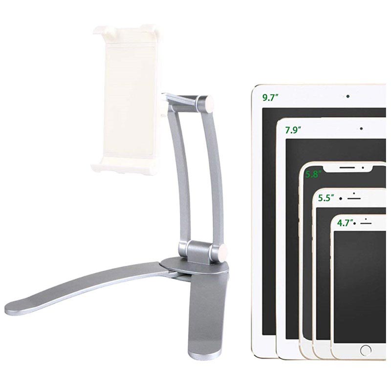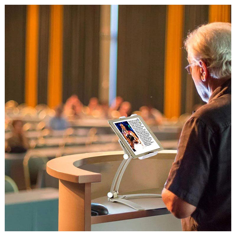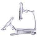 Yleismallinen ja monitoiminen tablettipidike voidaan asentaa yhtä hyvin työpöydälle kuin seinään, koska sen mukana tulee kiinnitettävä asennusalusta. Monitoiminen 2-in-1 pidike on sunniteltu pitämään turvallisesti kaikkia tabletteja, joiden leveys on 125mm - 190 mm. Säädettävä varsi 360 asteen kääntyvyydellä ja 180 asteen taittuvuudella mahdollistaa tabletin asettelemisen täydelliseen katseluasentoon.