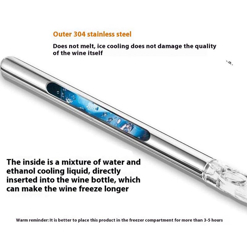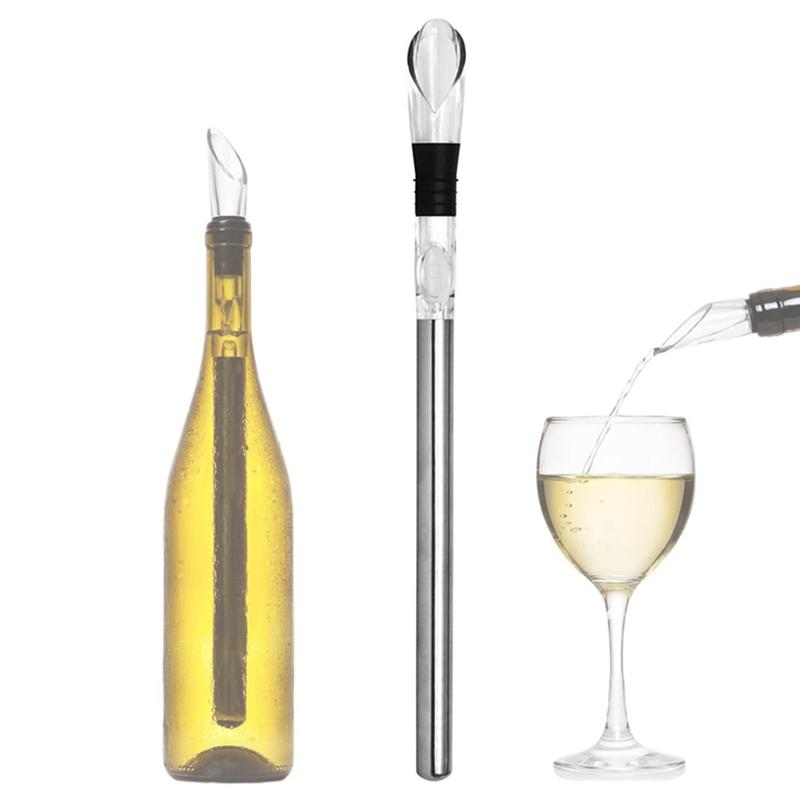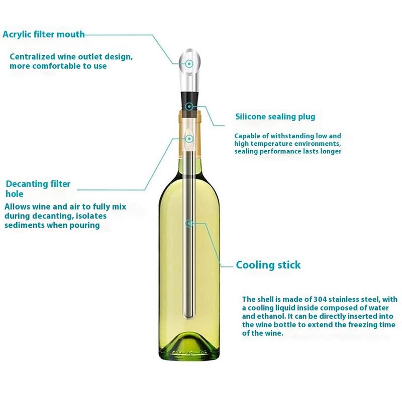 3-in-1 ruostumattomasta teräksestä valmistettu viinin jäähdytystanko - Iceless-jäähdytystanko, jossa on ilmastin ja kaadin