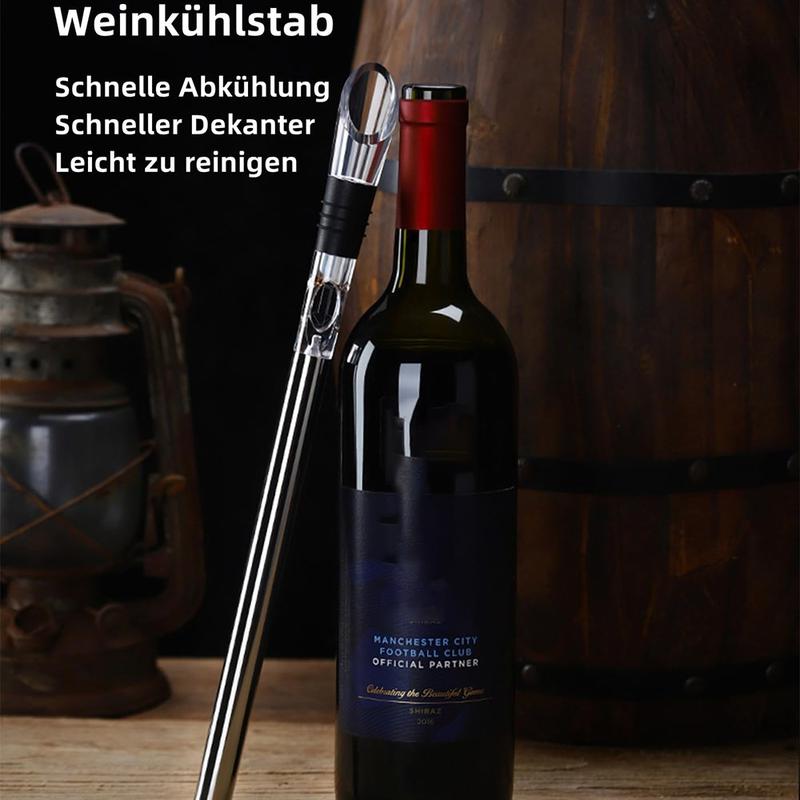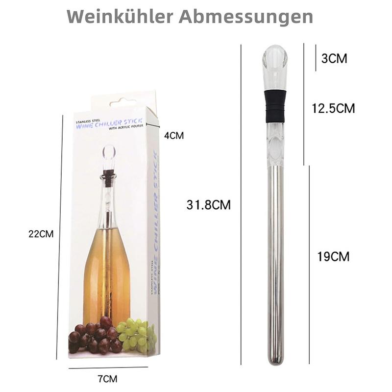 Nauti täydellisesti jäähdytetystä viinistä vesittämättä sitä. Tämä 3-in-1 ruostumattomasta teräksestä valmistettu viininjäähdytystanko jäähdyttää viinisi vain 10-15 minuutissa ja auttaa pitämään sen kylmänä yli 2 tuntia. Sisäänrakennettu ilmastin parantaa aromia ja makua kaadettaessa, ja integroitu kaatonokka takaa tasaisen, tippumista vähentävän annostelun. Aseta tanko vain pakastimeen ennen käyttöä, työnnä se pulloon ja nauti virkistävästä viinistä oikeassa lämpötilassa - olipa kyseessä sitten valkoviini, rosé tai punaviini.