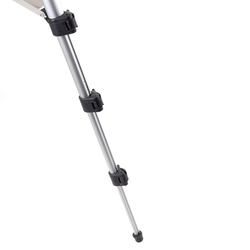 Tukevasta alumiiniseoksesta valmistettu kolmijalka tarjoaa erinomaisen kestävyyden ja on samalla kevyt ja helppo kuljettaa.