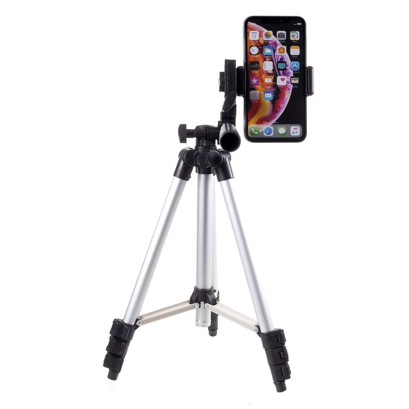 3110 Alumiininen säädettävä kolmijalka, jossa on puhelinpidike - 57-83mm pidike, 1020mm korkeus