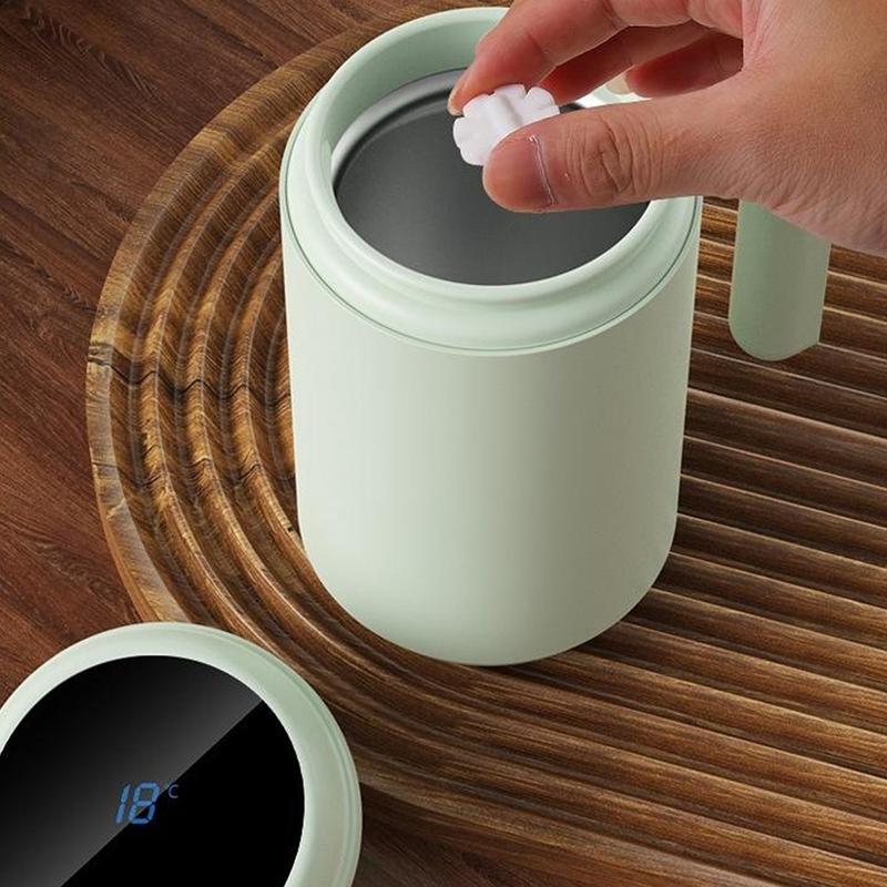 Nauti täydellisesti sekoitetuista ja täsmällisesti lämmitetyistä juomista milloin tahansa 316 ruostumattomasta teräksestä valmistetulla itsestään sekoittavalla mukilla. Tässä mukissa on sisäänrakennettu lämpötilan näyttö, magneettinen sekoitusjärjestelmä ja kestävä kaksiseinäinen eristys, ja se tarjoaa täydellisen yhdistelmän innovaatiota, siirrettävyyttä ja käytännöllisyyttä jokapäiväiseen käyttöön.