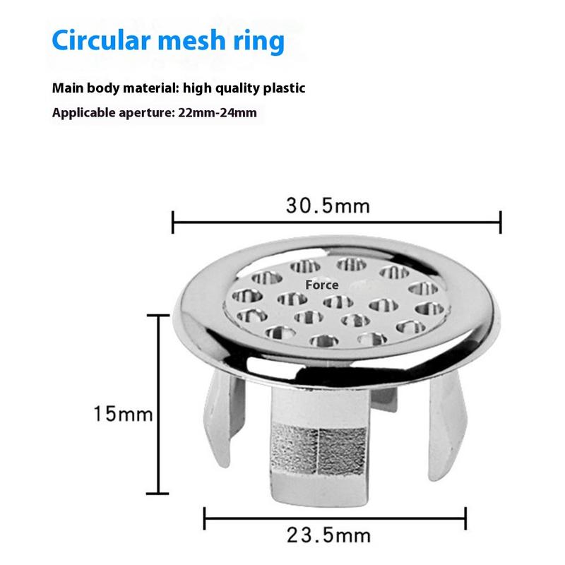 Kylpyhuoneen pesualtaan ylivuoto renkaat - Muoviset koristeelliset verkkorenkaat altaan ylivuotoaukkoihin