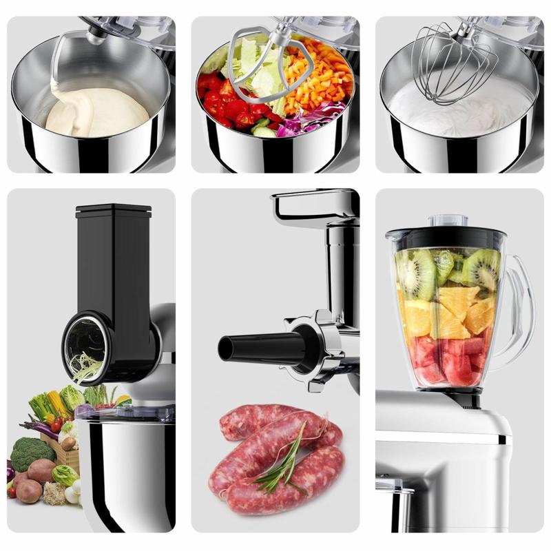 Yksinkertaista keittiörutiinejasi 5.5Litran monitoimikeittiösekoittimella, joka on monitoimilaite, joka on suunniteltu hoitamaan kaikki ruoanlaitto- ja leivontatehtävät helposti. Yhdistämällä taikinanvaivaajan, tehosekoittimen, tehosekoittimen, lihamyllyn ja mehustimen tehon se tarjoaa ammattimaisia tuloksia ja jokapäiväistä mukavuutta yhdessä kompaktissa laitteessa.
