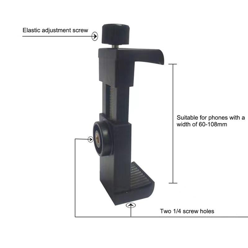 Puhelinklipsi sisältää luistamattoman silikonityynyn, joka pitää puhelimesi vakaana. Se tukee 60-100 mm leveitä laitteita ja mahdollistaa sekä vaakasuoran että pystysuoran kuvaamisen luovampien sisältöjen luomiseksi. Yleiskäyttöinen 1/4" ruuviliitäntä pohjassa ja takana tekee siitä yhteensopivan monien jalustojen ja kiinnikkeiden kanssa.