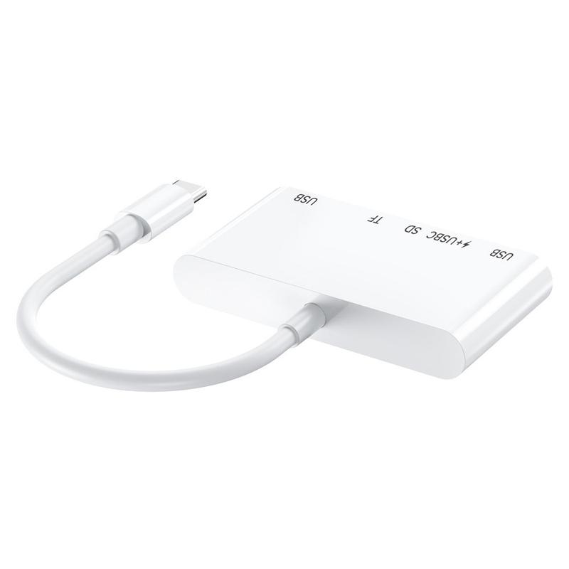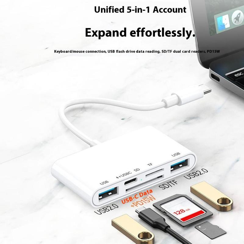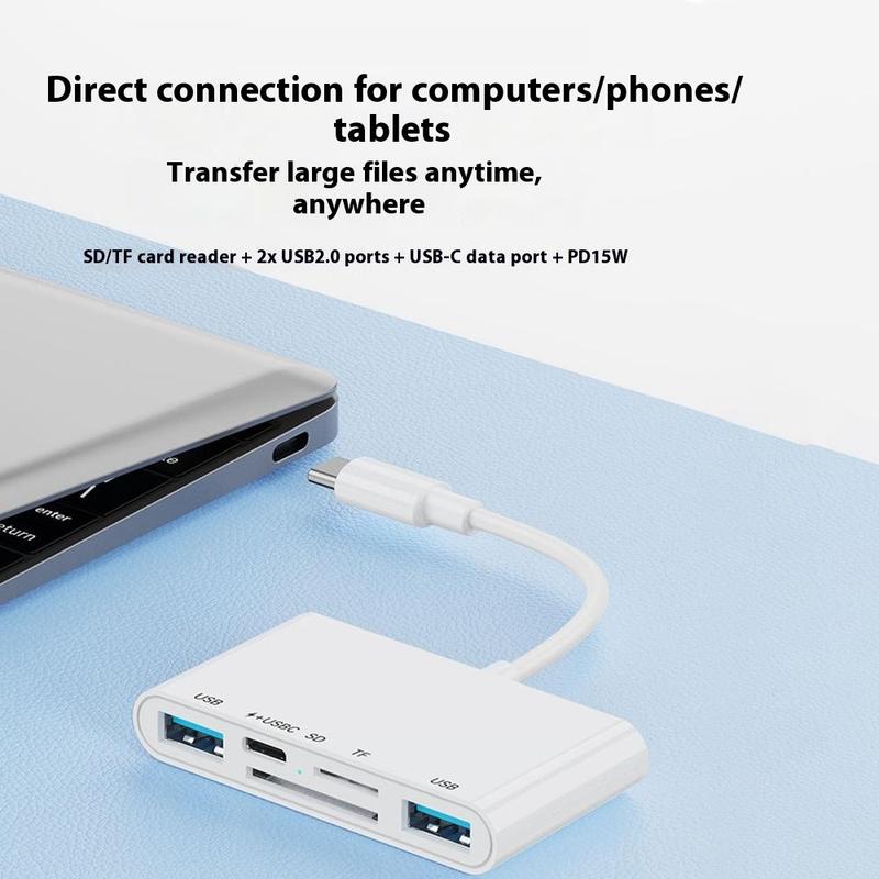 5-in-1 USB-C OTG-sovitin - USB-C-keskitin kahdella USB 2.0:lla, 15W PD-latauksella ja SD/TF-kortinlukijalla iPhonelle, MacBookille ja USB-C-laitteille