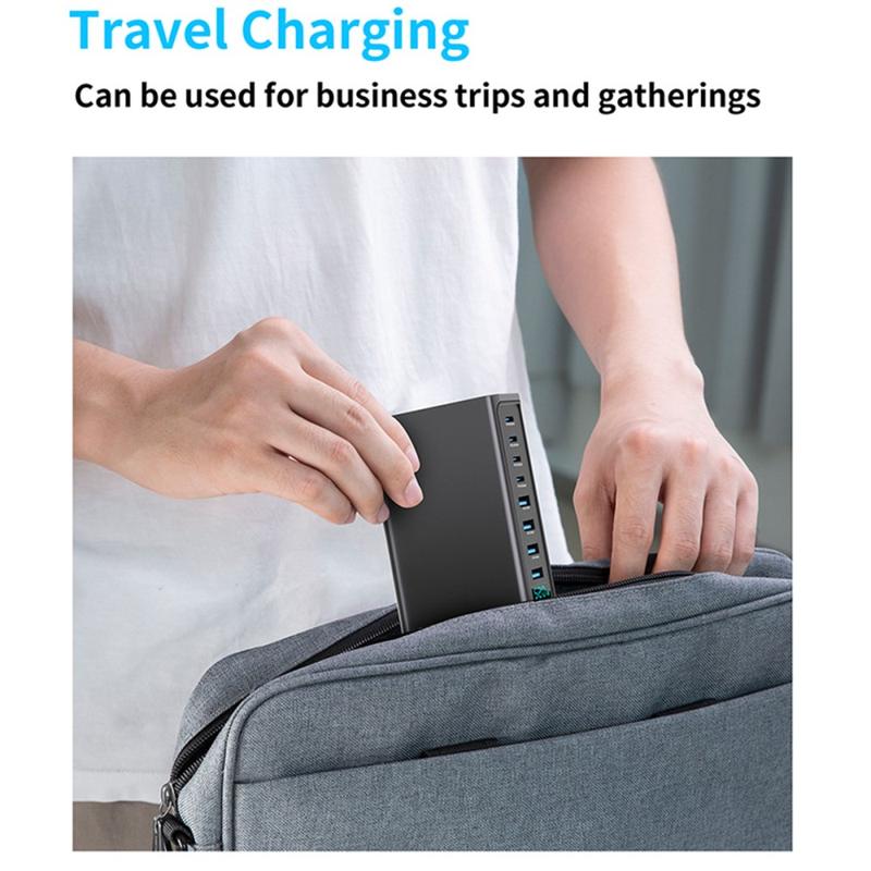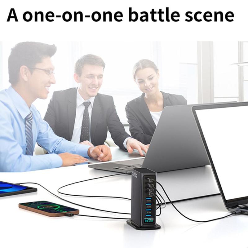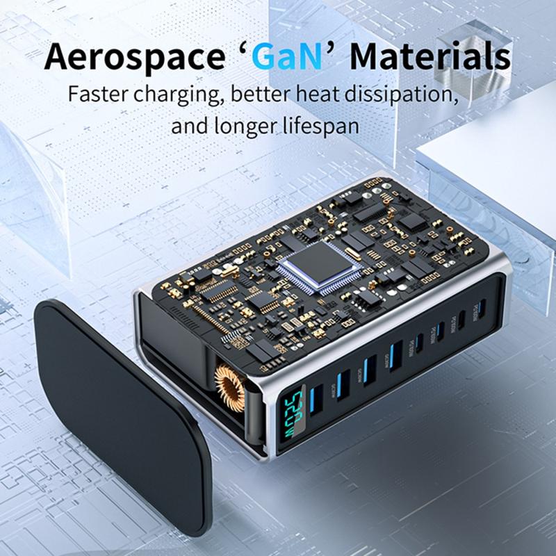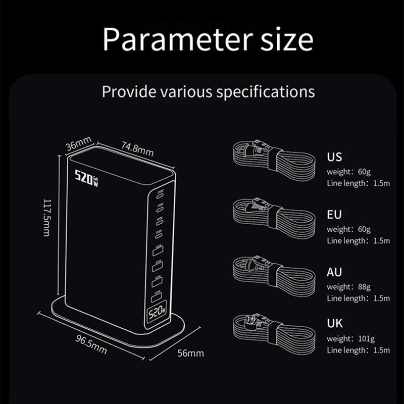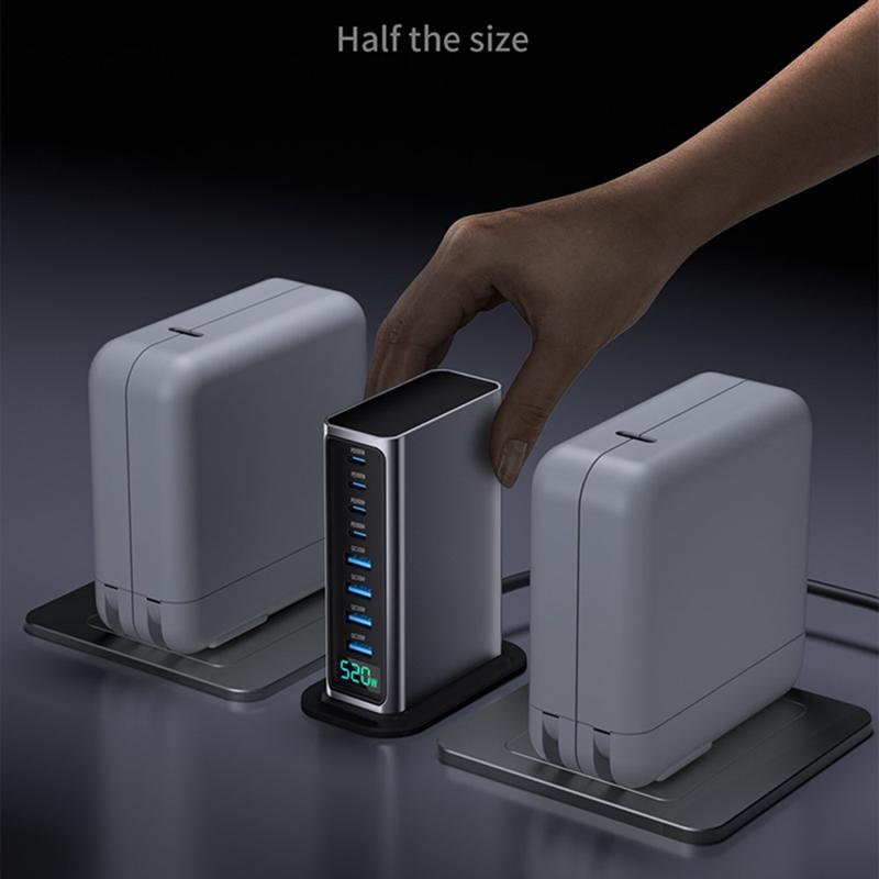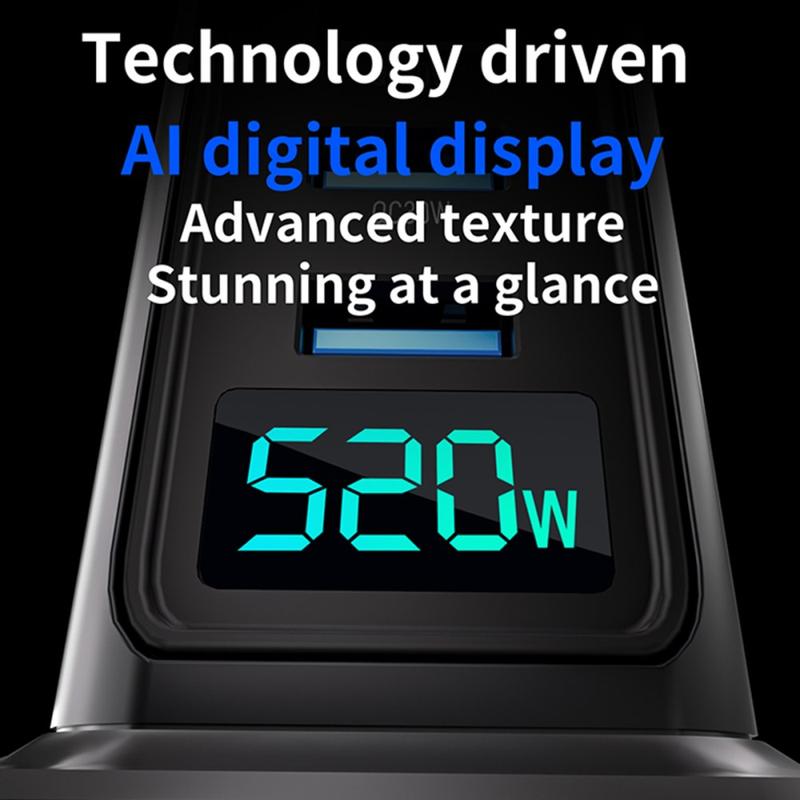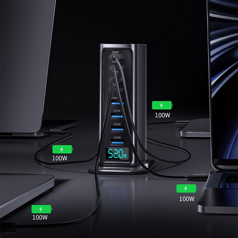 520W GaN 5.0 -pöytälatausasema digitaalisella tehonäytöllä - 8 porttia (4x USB-C jopa 100W + 4x USB-A) Pikalaturi, PPS/PD/QC