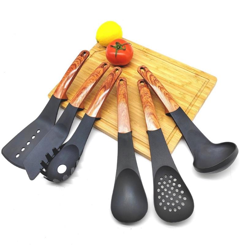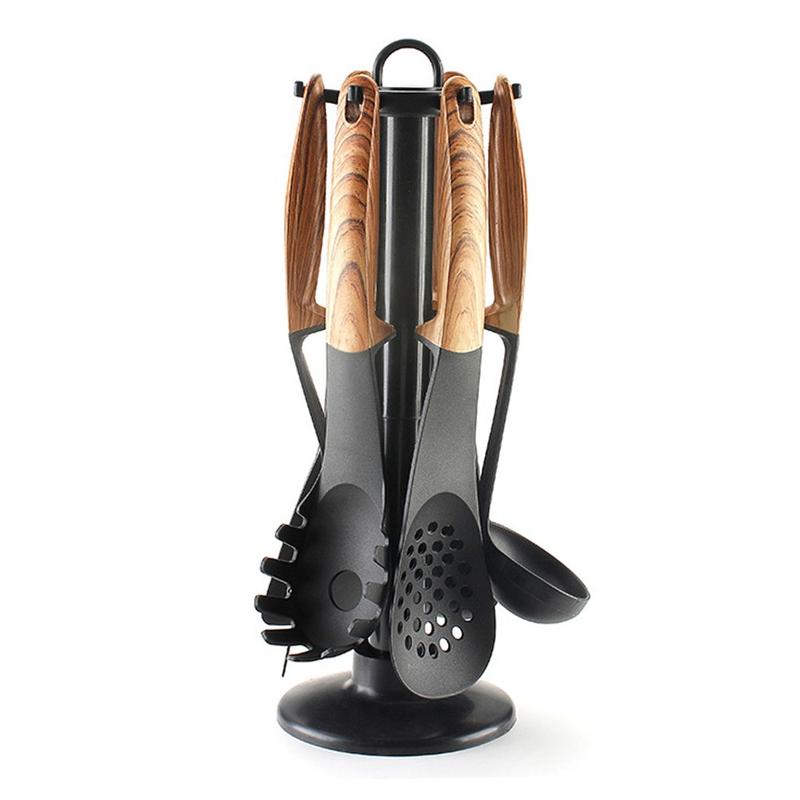 Päivitä keittiötarvikkeesi tällä 7-osaisella kuumuutta kestävällä ruoanlaittovälinekokoelmalla, joka on suunniteltu jokapäiväiseen käyttöön ja vaivattomaan ruoanlaittoon. Kestävät nailonpäät, ergonomiset puukuvioidut kahvat ja kätevä säilytysteline tuovat tähän sarjaan tyyliä, mukavuutta ja käytännöllisyyttä jokaiseen keittiöön.