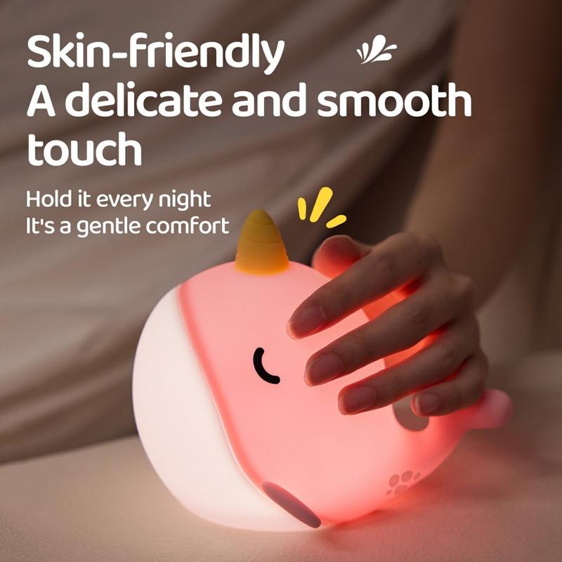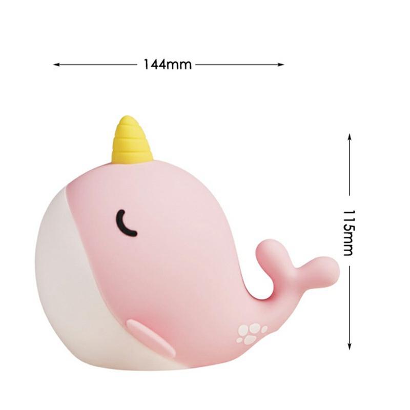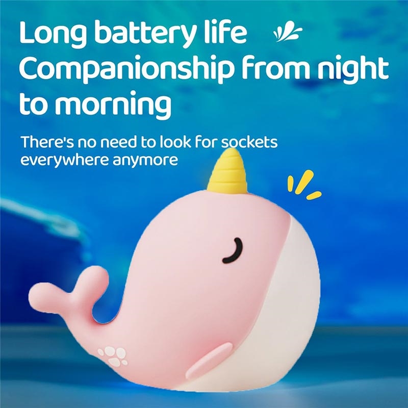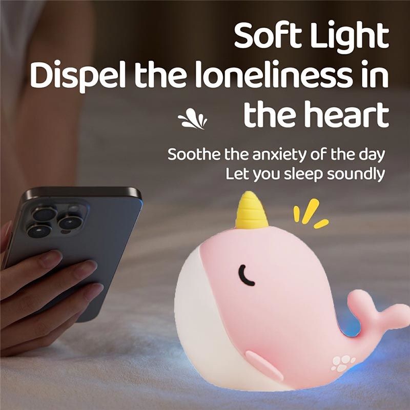 A044 Narwhal Silikoni-yövalo - napautusohjaus, USB-C ladattava ja pehmeä ympäristöhohto