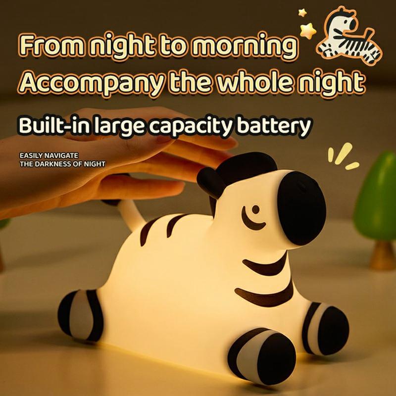 A067 Zebra Silikoni-yövalo - napautusohjaus, ladattava ja pehmeä ympäristön hehkuva valo.