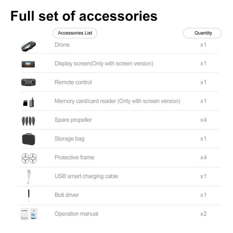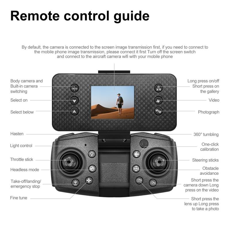 A118 Harjaton lennokki - Taitettava RC-nelikopteri optisella virtauksella, esteiden välttämisellä, 90 asteen säädettävällä kameralla ja irrotettavalla näytöllä - 3 akkua ja 8GB-kortti