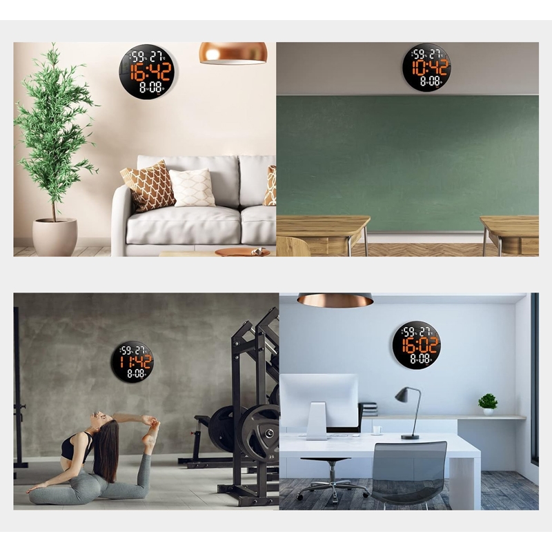 6672 Äänetön Digitaalinen LED-Seinäkello 25,5 cm Lämpötila- ja Ilmankosteusnäytöllä, Yövalolla ja Kaukosäätimellä