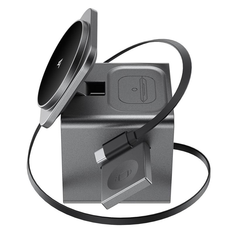 Acefast E34 3-in-1 magneettinen langaton latausasema, jossa on sähköinen läppä älypuhelimelle, älykellolle ja kuulokkeille - 15W, 5W, 2.5W