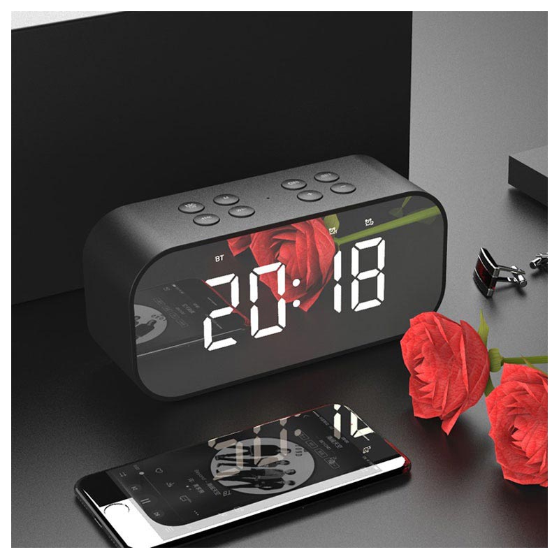 - AEC BT501 Bluetooth-kaiutin LED herätyskellolla, jonka ainutlaatuinen muotoilu sopii kaikkiin koti- tai työympäristöihin