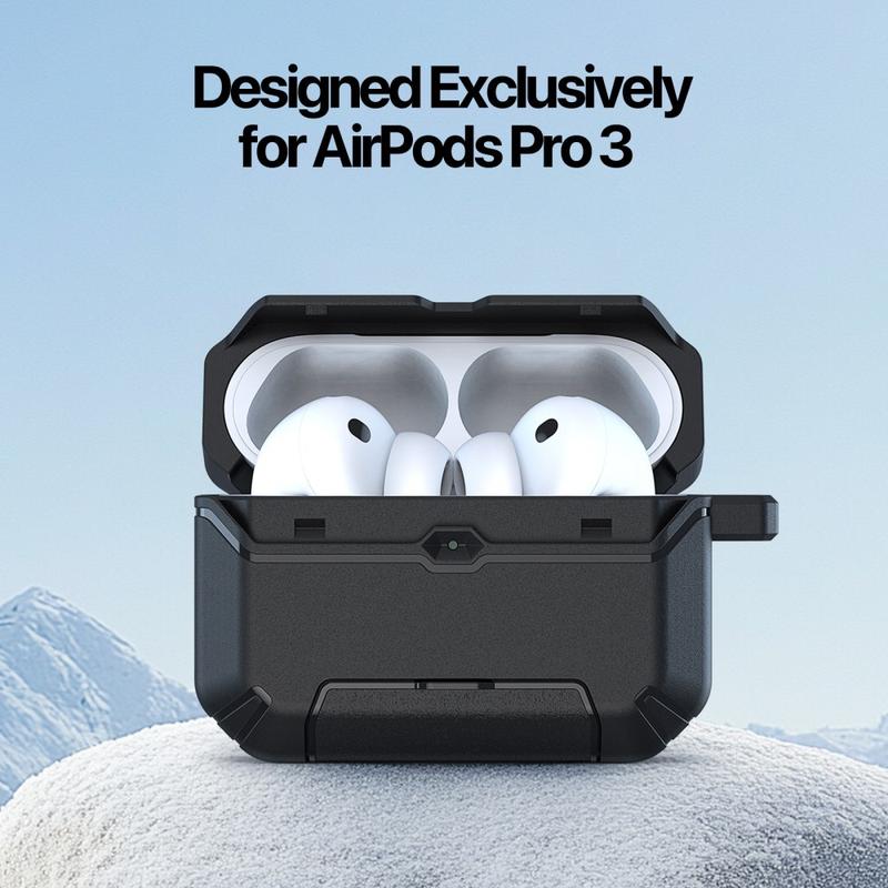 Tämä kotelo tarjoaa yhdistelmän suojausta, älykästä toiminnallisuutta ja ensiluokkaisia materiaaleja, jotka helpottavat AirPods Pro 3:n käyttöä jokapäiväisissä tilanteissa. Sisäänrakennettu jalusta on erottuva mukavuusominaisuus, jota harvoin löytyy AirPods Pro 3 -koteloista, kun taas hybridi PC+TPU-rakenne tarjoaa luotettavan päivittäisen suojan. Kompakti, tyylikäs ja käytännöllinen kotelo parantaa merkittävästi AirPods Pro 3:n käytettävyyttä ja turvallisuutta.
