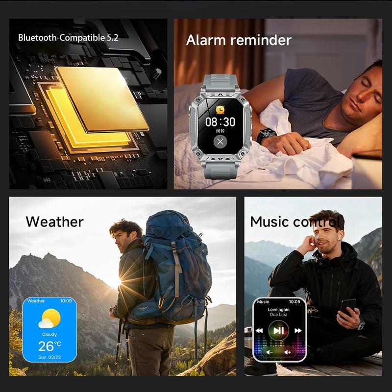 AK86-älykello yhdistää suuren, helppolukuisen näytön edistyneeseen terveydentilan seurantaan ja Bluetooth-puheluominaisuuksiin, mikä tekee siitä käytännöllisen kumppanin työhön, urheiluun ja vapaa-aikaan. 2,01 tuuman HD-näyttö, jonka resoluutio on 320 x 385, tarjoaa selkeän kuvan, ja sujuva käyttöliittymä, jossa on vedä ja pudota -navigointi ja pikakäyttöinen ohjauskeskus, pitää kaiken intuitiivisena. Kellossa on 8773EWE-siru, 128 Mt muistia ja Bluetooth 5.2, joten se tarjoaa vakaata suorituskykyä ja luotettavaa yhteyttä. Koko päivän sykemittaus, veren happipitoisuuden seuranta, yli 100 urheilutilaa ja tehokas 1400 mAh:n akku tekevät kellosta ihanteellisen valinnan käyttäjille, jotka haluavat pitkän akunkeston ja monipuoliset toiminnot yhdestä laitteesta.