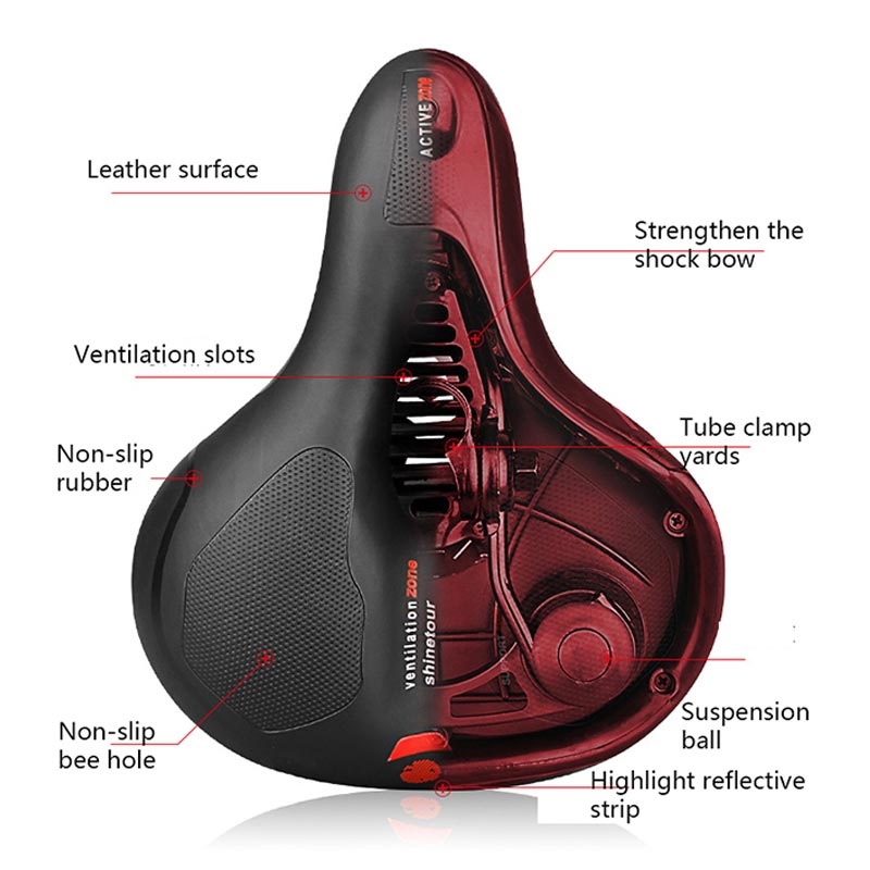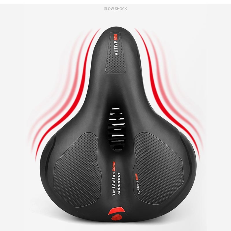 Paranna pyöräilymukavuuttasi leveällä pehmeällä pehmustetulla pyöräistuimella, joka on suunniteltu maksimaaliseen pehmustukseen, iskunvaimennukseen ja yöturvallisuuteen. Sen ergonominen muoto, hengittävä pehmuste ja kestävä jousitusjärjestelmä tekevät siitä ihanteellisen päivittäiseen työmatkaliikenteeseen, pitkiin matkoihin ja kaikenlaisiin seikkailuihin.