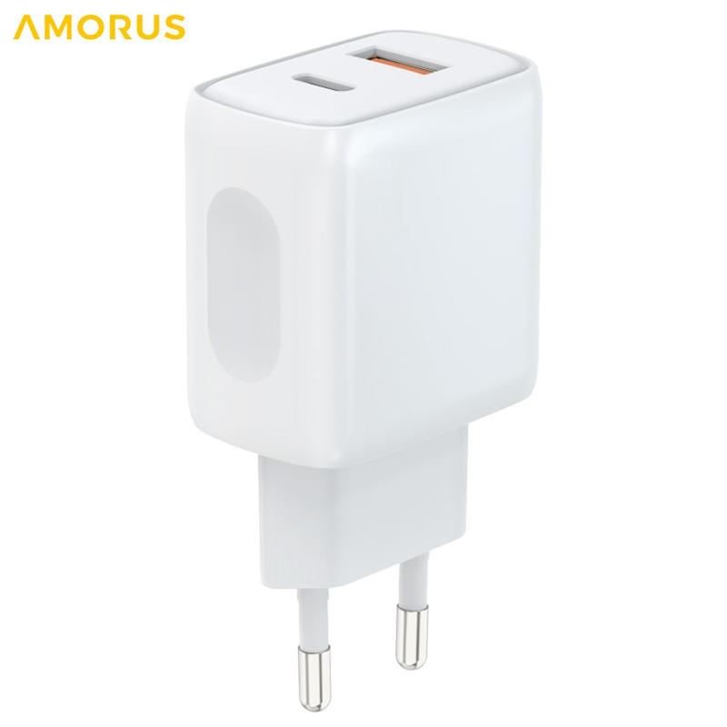 AMORUS-kaksoisporttinen seinälaturi yhdistää USB-C PD -lähdön (enintään 20 W) ja USB-A-pikalähdön (enintään 18 W), joten voit ladata kahta laitetta samanaikaisesti – ihanteellinen älypuhelimille, tableteille, kuulokkeille, virtapankkeille ja muille laitteille.