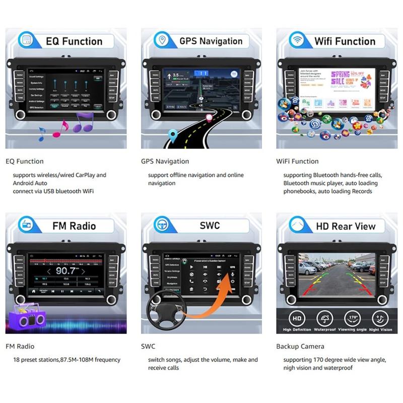 Päivitä kojelaudasi Android 13 -autostereoilla, 7-tuumaisella multimediasoittimella, joka on suunniteltu tekemään ajamisesta entistä verkottuneempaa ja mukavampaa. Langattoman Android Auto -tuen, sisäänrakennetun Bluetoothin, GPS:n, Wi-Fi:n ja herkän kosketusnäytön ansiosta pääset helposti käsiksi navigointiin, puheluihin, musiikkiin ja jokapäiväisiin sovelluksiin ajon aikana.