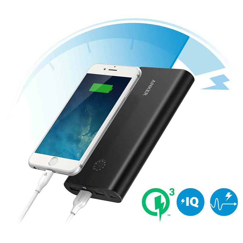 Varustettu valtavalla 26800mAh kapasiteetilla ja kolmella USB-latausportilla PowerCore+ pitää laitteesi ladattuna missä ikinä oletkin. Quick Charge 3.0 sekä Ankerin edistykselliset PowerIQ ja VoltageBoost -tekniikat tarjoavat täyden nopeuden laitteidesi lataamiseen, jopa 3 ampeeria USB-porttia kohden.