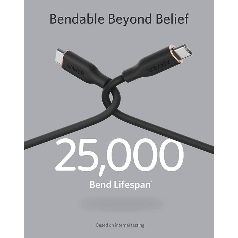 Anker PowerLine III Flow USB-C-USB-C-kaapelissa yhdistyvät poikkeuksellinen pehmeys ja erinomainen kestävyys. Ensiluokkaisella silikonilla viimeistelty kaapeli tuntuu erittäin pehmeältä kädessäsi ja pysyy joustavana ja mutkattomana jokapäiväisessä käytössä. Se on suunniteltu nykyaikaisille suuritehoisille laitteille ja tukee jopa 100 W:n pikalatausta, joten se sopii erinomaisesti älypuhelimille, tableteille ja kannettaville tietokoneille. Tämä kaapeli tarjoaa luotettavan suorituskyvyn ja ensiluokkaisen tuntuman joka kerta, kun kytket sen kotona, toimistossa tai liikkeellä.