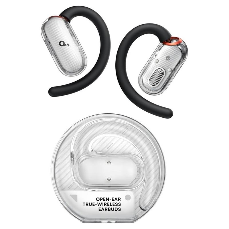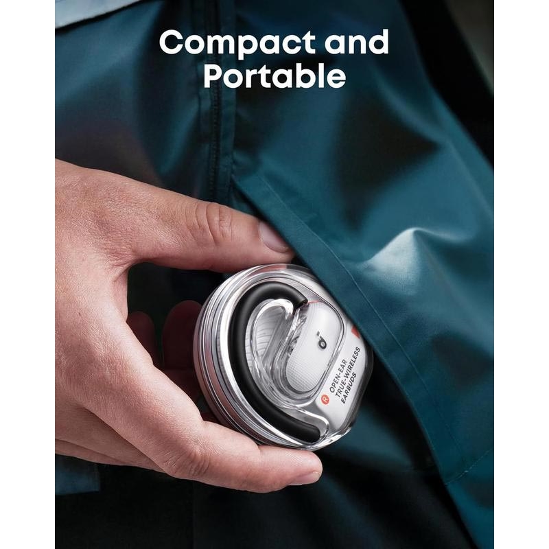Soundcore V40i -avokuulokkeet on suunniteltu aktiiviseen elämäntyyliin, jossa mukavuus, tietoisuus ja äänenlaatu ovat tärkeitä. Innovatiivisen avokorvasuunnittelun ja säädettävien korvakoukkujen ansiosta ne istuvat mukavasti korvakäytävän ulkopuolella, jolloin voit nauttia musiikista ja pysyä samalla tietoinen ympäristöstäsi. Tyylikäs, ilman kantta oleva läpinäkyvä latauskotelo tuo modernin ilmeen ja mahdollistaa nopean ja vaivattoman käytön missä tahansa.
