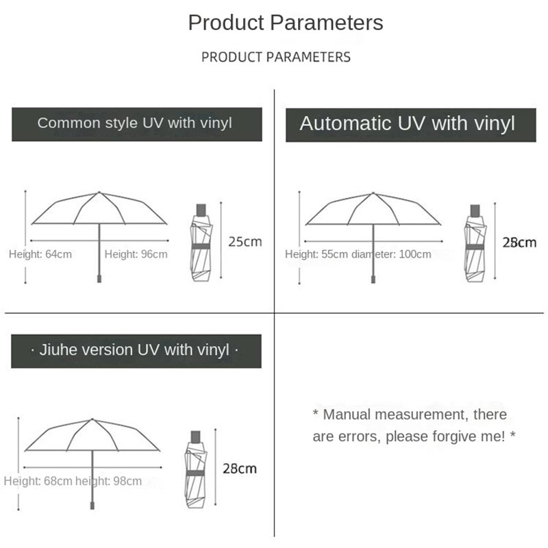 Anti-UV Compact taittuva sateenvarjo - kannettava matka-aurinko ja sateenvarjo, jossa on 8 kylkiluuta, kolminkertainen muotoilu, säilytyspussi