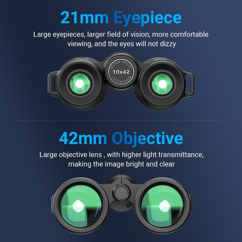 - 10x42 suuritehoinen suurennos kirkkaalla, terävällä HD-kuvauksella varustettuna