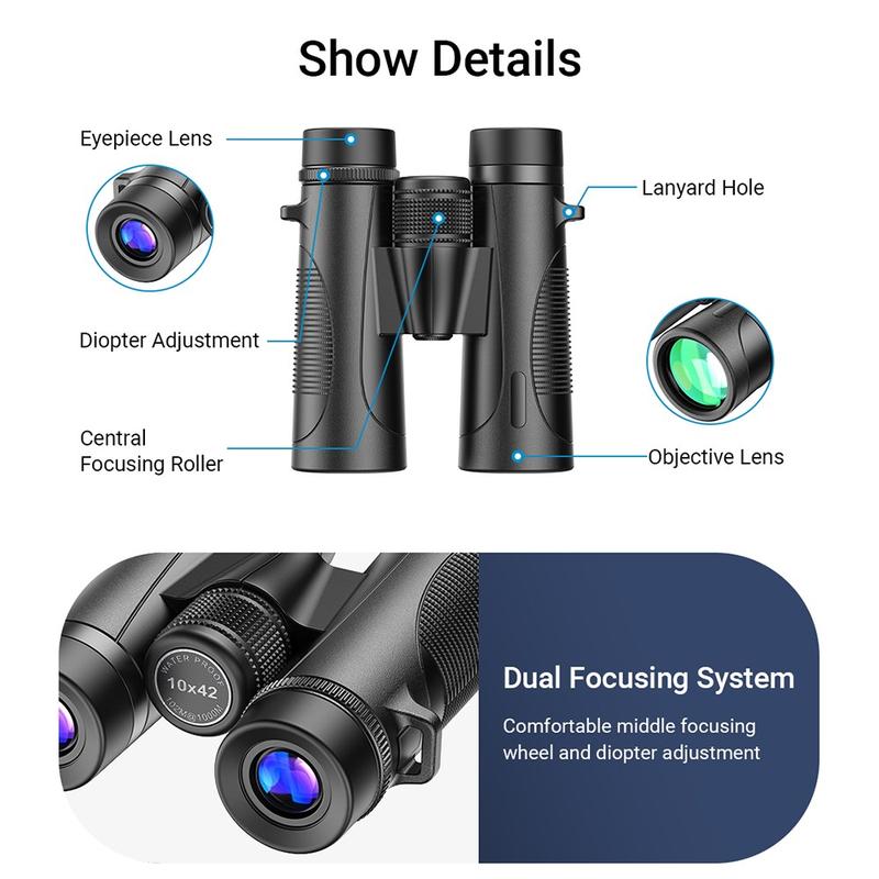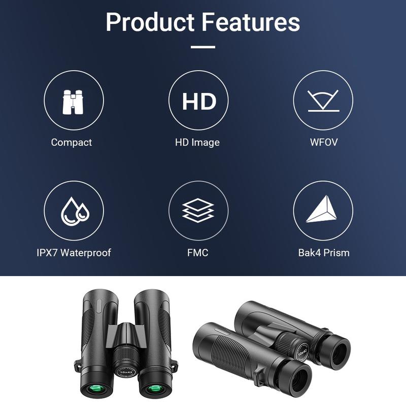 Apexel 10x42 HD vedenpitävä kiikari - FMC monipinnoitettu, BAK4 prisma, hämäränäkö lintujen tarkkailuun, metsästykseen ja ulkokäyttöön