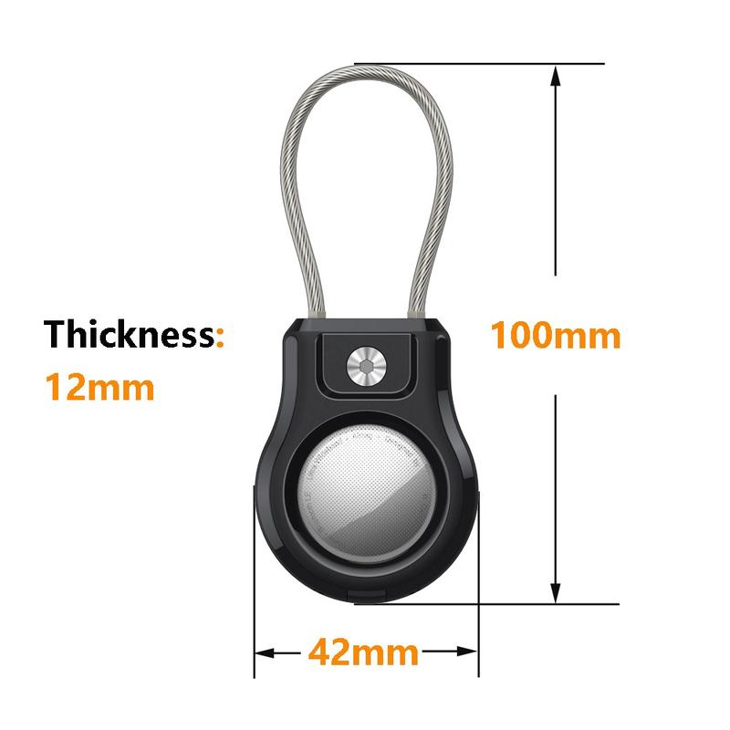 - Turvallinen teräsvaijerihihihna - Sisäänrakennettu ruostumattomasta teräksestä valmistettu vaijeri mahdollistaa kiinteän kiinnityksen avaimiin, reppuihin, lemmikkien kaulapantoihin, matkatavaroihin tai polkupyöriin, mikä varmistaa, että Apple AirTag/AirTag 2 pysyy tukevasti paikallaan.