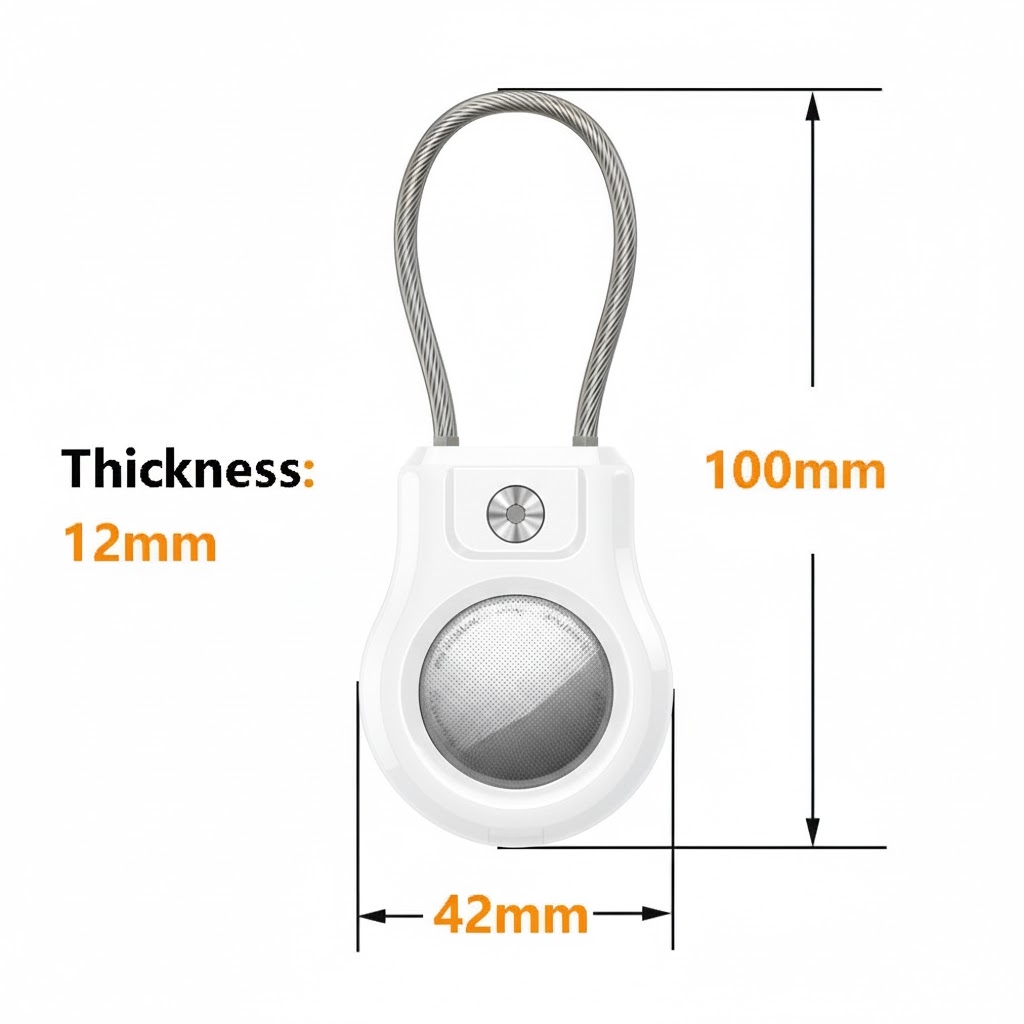 - Turvallinen teräsvaijerihihihna - Sisäänrakennettu ruostumattomasta teräksestä valmistettu vaijeri mahdollistaa kiinteän kiinnityksen avaimiin, reppuihin, lemmikkien kaulapantoihin, matkatavaroihin tai polkupyöriin, mikä varmistaa, että Apple AirTag/AirTag 2 pysyy tukevasti paikallaan.