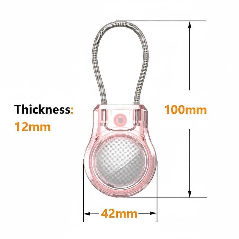 - Turvallinen teräsvaijerihihihna - Sisäänrakennettu ruostumattomasta teräksestä valmistettu vaijeri mahdollistaa kiinteän kiinnityksen avaimiin, reppuihin, lemmikkien kaulapantoihin, matkatavaroihin tai polkupyöriin, mikä varmistaa, että Apple AirTag/AirTag 2 pysyy tukevasti paikallaan.