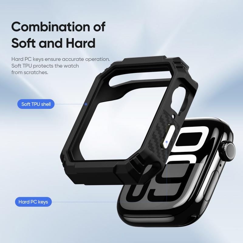 Tämän kaltaiset kellokotelot on suunniteltu vastaamaan tekniikkaa arvostavien käyttäjien tarpeita, ja ne tarjoavat kestävyyttä tyylikkäällä, modernilla muotoilulla. PC:n ja TPU-materiaalin yhdistäminen tarjoaa erinomaisen iskunkestävyyden, joten se on ihanteellinen lisävaruste Apple Watch Series 11/10:n kaltaisten premium-laitteiden suojaamiseen.
