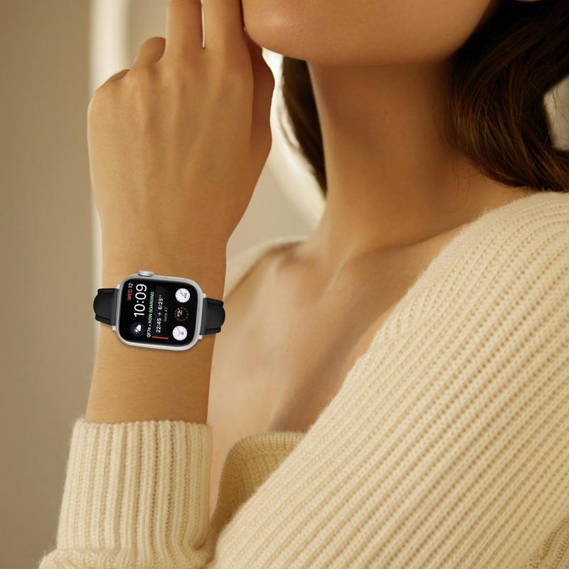 - Sileä nahkapinta auttaa antamaan Apple Watchillesi hienostuneemman ja tyylikkäämmän ilmeen.