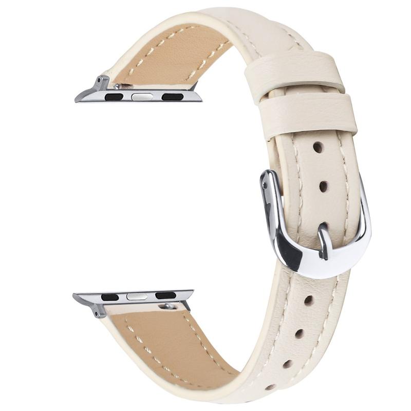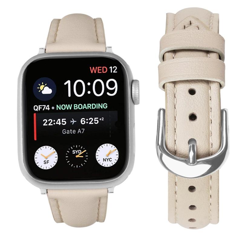 Ohut nahkahihna Apple Watch Series 11:lle, Apple Watch Series 10:lle, Apple Watch Series 9:lle, Apple Watch Series 8:lle, Apple Watch SE 3:lle, Apple Watch SE (2022):lle, Apple Watch Series 7:lle, Apple Watch SE:lle, Apple Watch Series 6, Apple Watch Series 5, Apple Watch Series 4, Apple Watch Series 3, Apple Watch Series 2, Apple Watch Series 1 - pehmeä nahkahihna hopeisella soljella