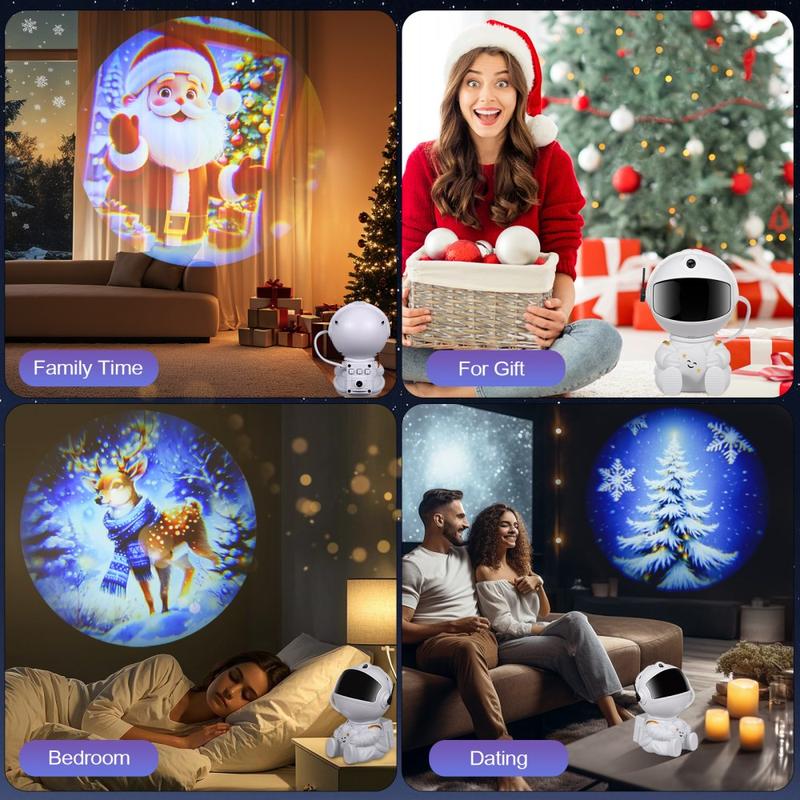Astronautti halailee tähteä jouluprojektorilamppu - USB-käyttöinen koristeellinen valo, jossa on 4 filmikiekkoa ja 16 kuviota