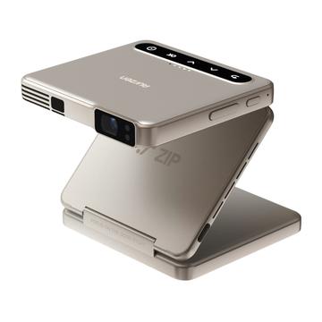 - Kannettava kolmiosainen miniprojektori, jonka joustava taitettava muotoilu mahdollistaa projisoinnin lähes mistä tahansa kulmasta