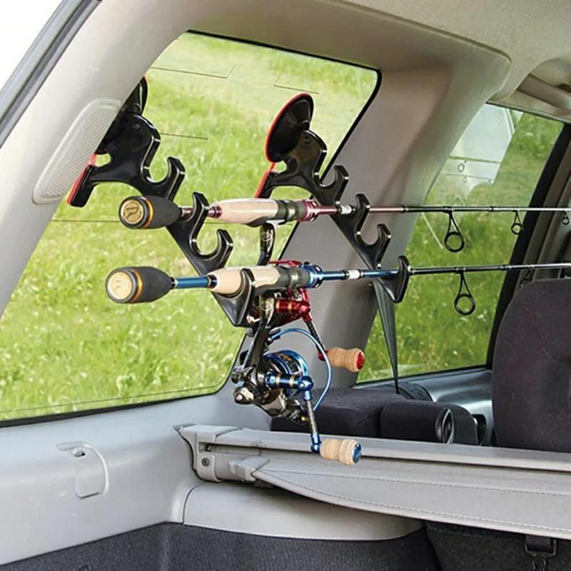 Auton imukupin kalastusvavan pidike - ABS 4-Rod Anti-Tangle Rod Rod Organizer ajoneuvon ikkunaan, 4 paikkaa (24 × 12 cm)