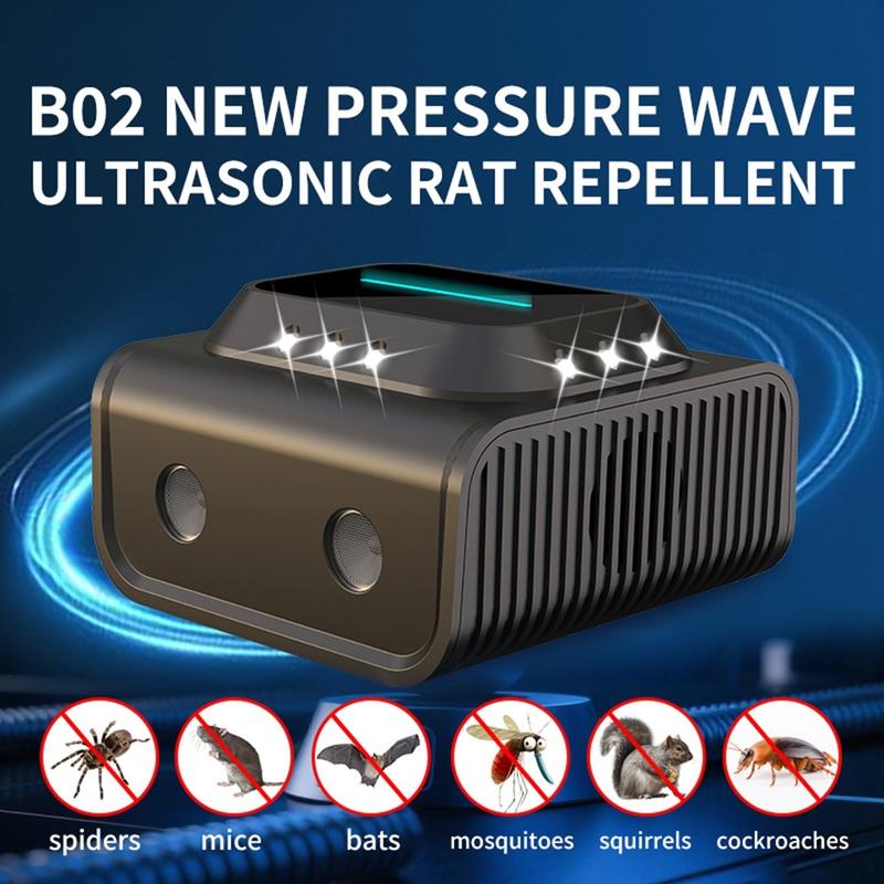 B02 Ultraääni korkean tehon jyrsijöiden karkotin / tuholaisten karkotin LED-stroboskooppivalolla hiirille, torakoille ja hyönteisille