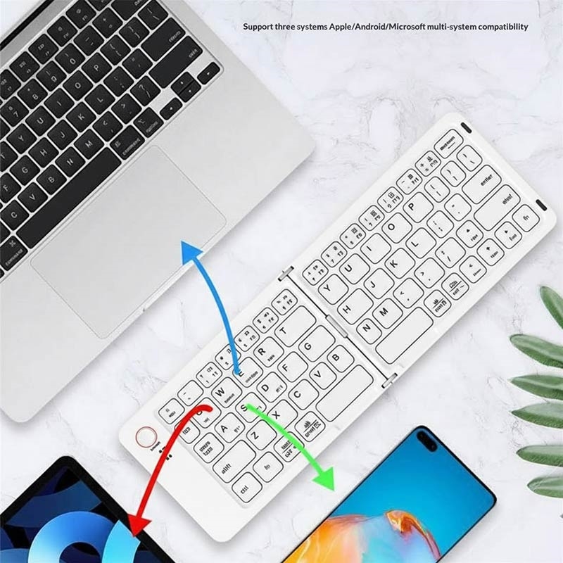 B023 68-näppäiminen magneettinen taitettava langaton näppäimistö on suunniteltu ihmisille, jotka työskentelevät ja kirjoittavat liikkeellä ollessaan. Älykkään magneettisen kaksoistaitettavan rakenteensa ansiosta näppäimistö taittuu erittäin ohueksi ja kompaktiksi, joten se mahtuu helposti laukkuun tai jopa suureen taskuun. Laaja Bluetooth-yhteensopivuus puhelimien, tablettien ja kannettavien tietokoneiden kanssa muuttaa minkä tahansa paikan tuottavaksi työtilaksi muutamassa sekunnissa.