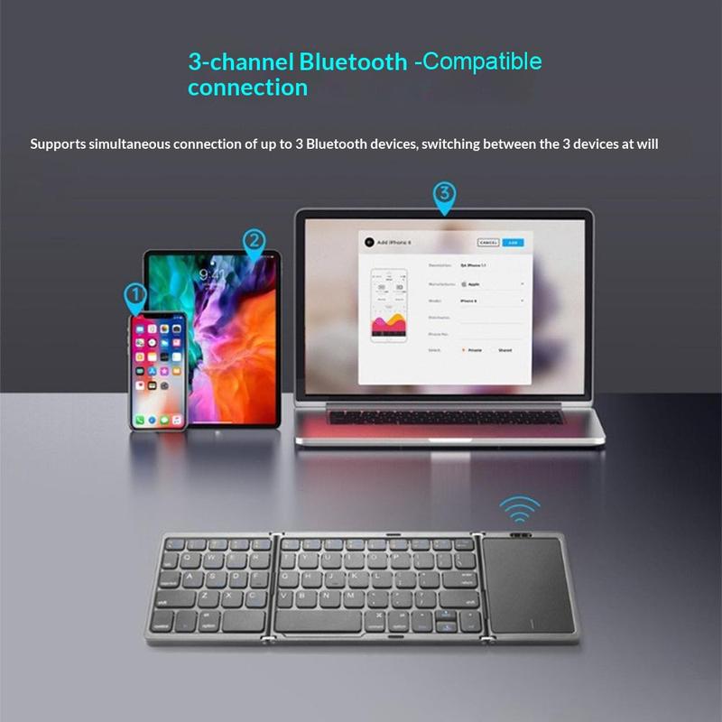 Työskentele mukavasti missä tahansa B089-taitettavan langattoman näppäimistön ja kosketuslevyn avulla. Sen ohut, kolmiosainen muotoilu mahtuu helposti kannettavan tietokoneen laukkuun, ja sisäänrakennettu kosketuslevy mahdollistaa sujuvan navigoinnin ilman erillistä hiirtä. Se on suunniteltu puhelimille, tableteille ja kannettaville tietokoneille, ja se on ihanteellinen matkustamiseen, etätyöskentelyyn ja päivittäiseen tuottavuuteen.