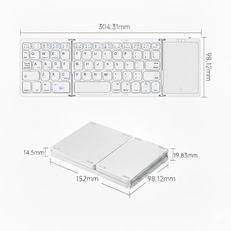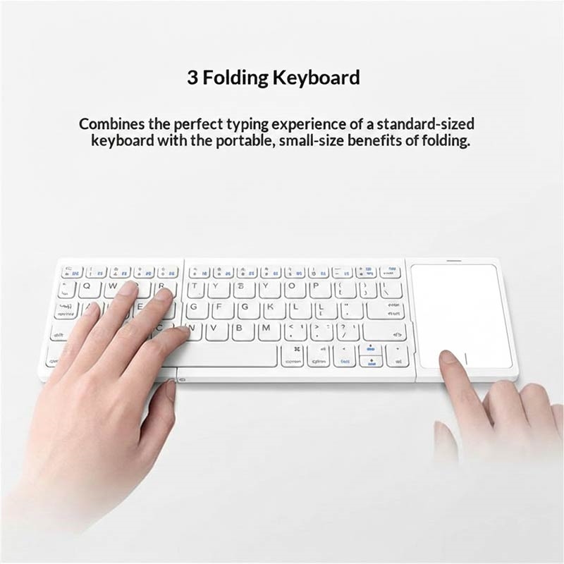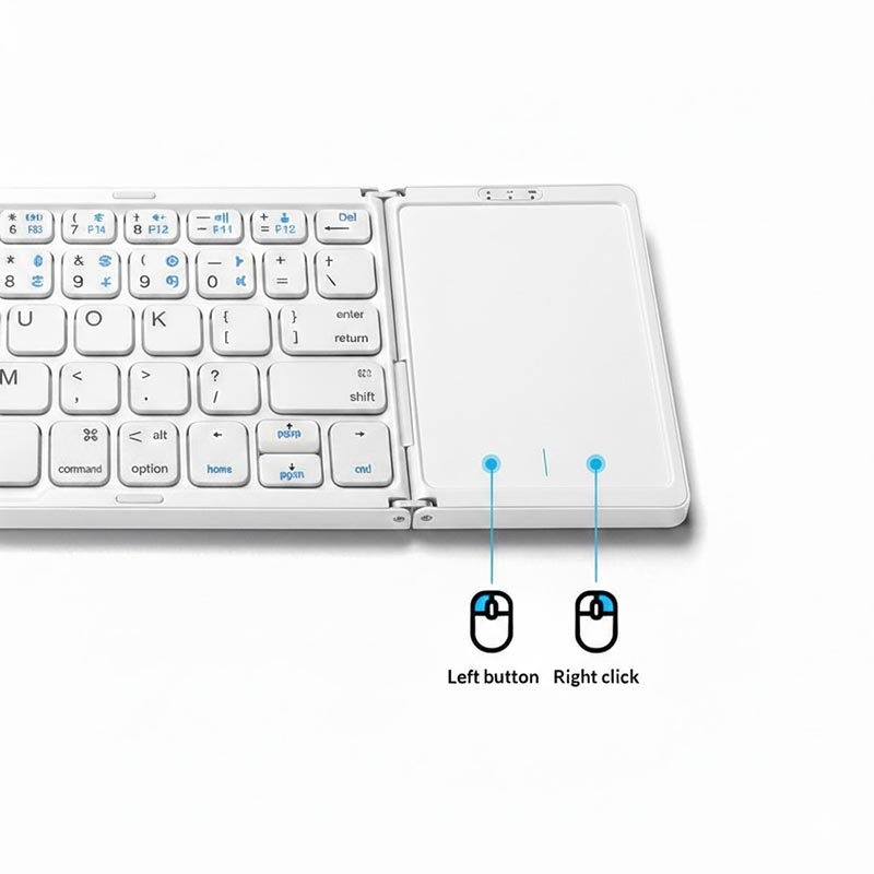 Työskentele mukavasti missä tahansa B089-taitettavan langattoman näppäimistön ja kosketuslevyn avulla. Sen ohut, kolmiosainen muotoilu mahtuu helposti kannettavan tietokoneen laukkuun, ja sisäänrakennettu kosketuslevy mahdollistaa sujuvan navigoinnin ilman erillistä hiirtä. Se on suunniteltu puhelimille, tableteille ja kannettaville tietokoneille, ja se on ihanteellinen matkustamiseen, etätyöhön ja päivittäiseen tuottavuuteen.