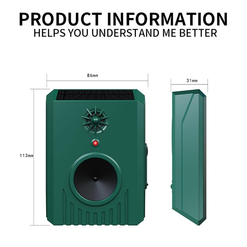 Tämä ultraäänilaite tarjoaa kemikaalittoman, hajuttoman ja lemmikkieläimille turvallisen vaihtoehdon haitallisille torjunta-aineille, joten se sopii kotitalouksiin, puutarhoihin ja ympäristötietoisille käyttäjille.