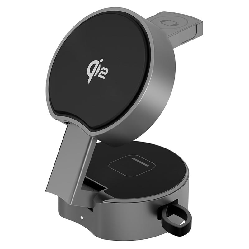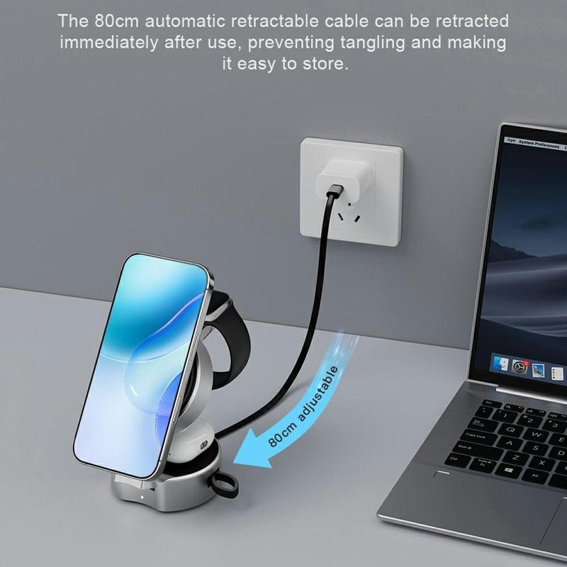 B30 3-in-1 taitettava magneettinen langaton laturi - Qi2 15W:n pikalatausasema, jossa on 80 cm:n sisäänvedettävä USB-C-kaapeli puhelimelle, kellolle ja kuulokkeille